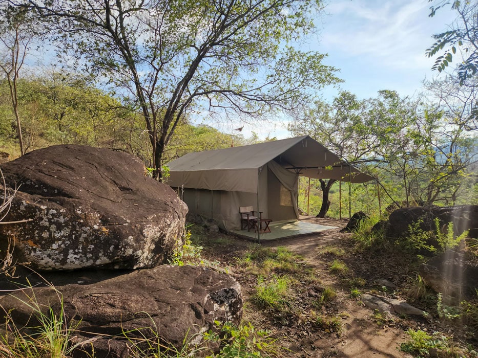 Comfortable tented camps or thatched bungalows in the field