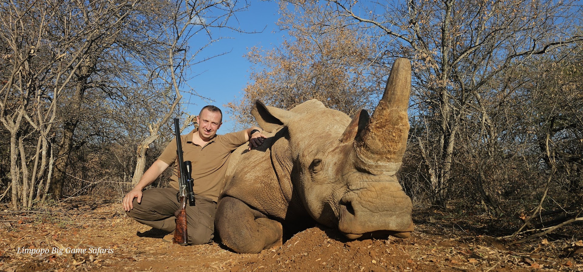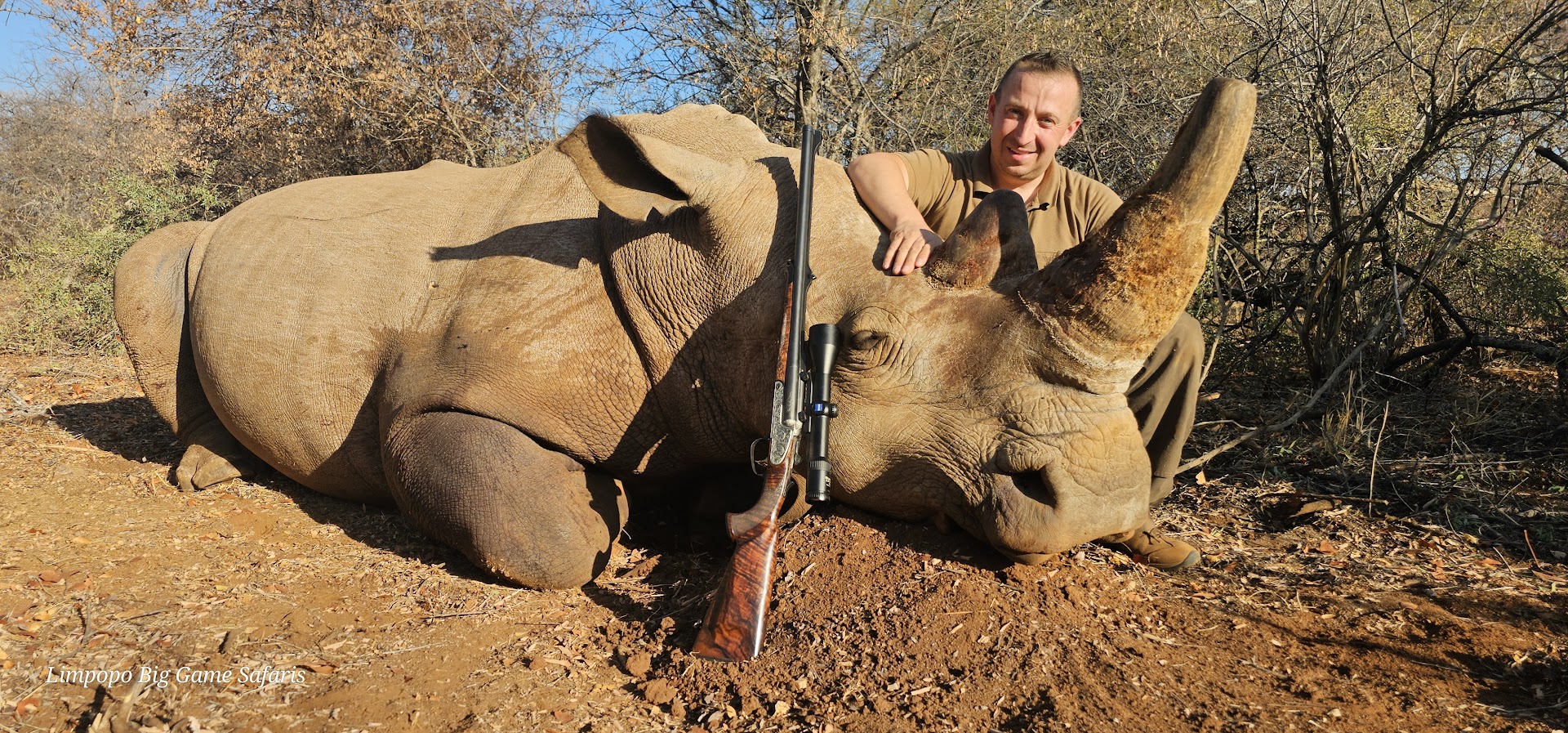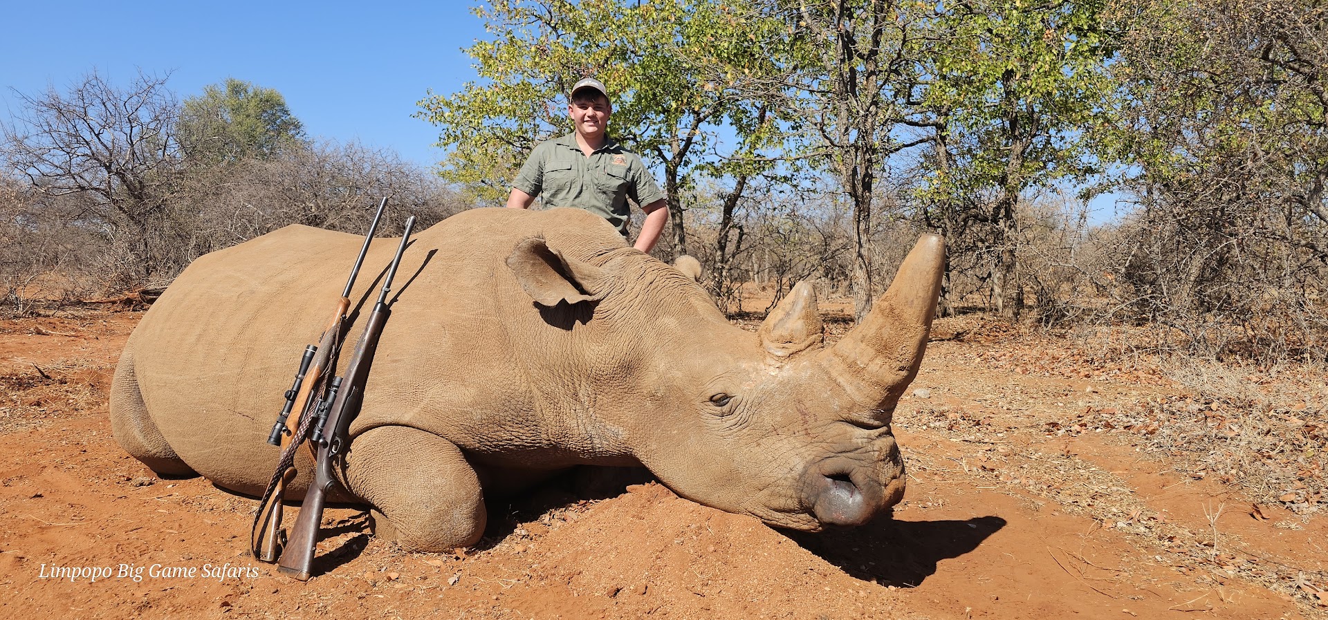 Zusätzliche Information: White Rhino hunt South Africa *450.00 Accommodation per night *180.00 Observers fee per night *White Rhino DART HUNT $7500.00 *White Rhino De-Horned $21000.00 *White Rhino 16 to 17 $23500.00 *White Rhino 17 to 18 $25000.00 *White Rhino 19 to 20 $27000.00 *White Rhino 20 to 21 $30000.00 *White Rhino 22 to 23 $35000.00 *White Rhino 23 to 24 $40000.00 *White Rhino 25 to 26 $45000.00 *White Rhino 26 to 27 $60000.00 *White Rhino 27 to 28 $70000.00 *White Rhino 28 to 29 $80000.00 *White Rhino 29 to 30 $95000.00 *White Rhino over 30" P.O.R 𝐀𝐂𝐂𝐎𝐌𝐌𝐎𝐃𝐀𝐓𝐈𝐎𝐍 𝐈𝐍𝐂𝐋𝐔𝐃𝐄𝐒 *The service of a licensed Professional Hunter *The service of trained trackers *The service of trained skinners *Hunting vehicle *Field preparation of trophies *Accommodation, Meals, soft drinks, bottled water as well as beer and wine in moderation *Daily laundry service ************************************ It is the responsibility of the hunter to confirm the importation status of a species to his/her country of origin. Limpopo Big Game Safaris do not take any responsibility for species that are not accepted into your country.