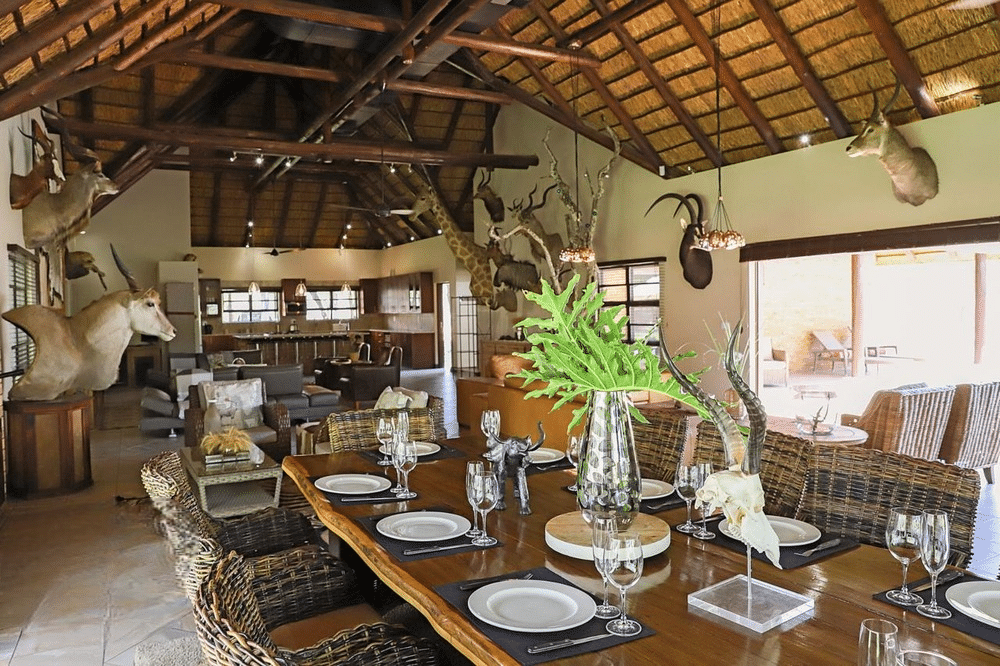 luxury lodge consists out of six rooms, each with a double bed or two single beds with an on suite bathroom. All modern amenities are provided,hot and cold running water,showers,flushing toilets and daily laundry services. Our professionally trained staff will attend to your every need be it culinary or otherwise.
