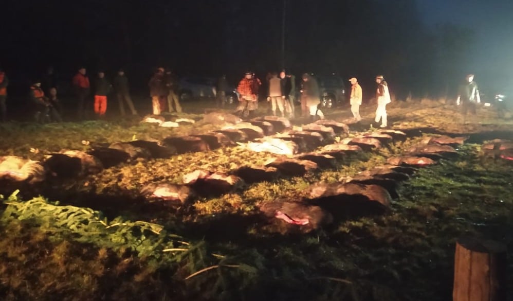 All wild boars males (piglets, yearlings, tuskers) during 2 days hunting